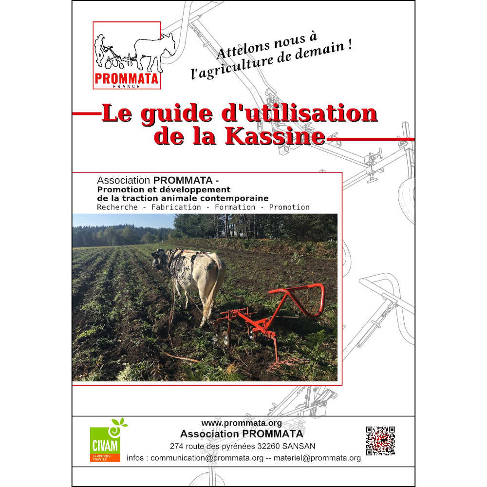 Ce livret de 56 pages reprend les différentes version du porte-outil, son vocabulaire, son fonctionnement dans la plupart des situations et ses principaux réglages. Il permet à l’utilisateur de retrouver les repères de bases appris en formation pour un confort du meneur et de l’animal. Il offre un aperçu aussi détaillé que possible des options, des équipements et des outils associés à la kassine et à son utilisation sur des cultures à plat en planche ou en billons.